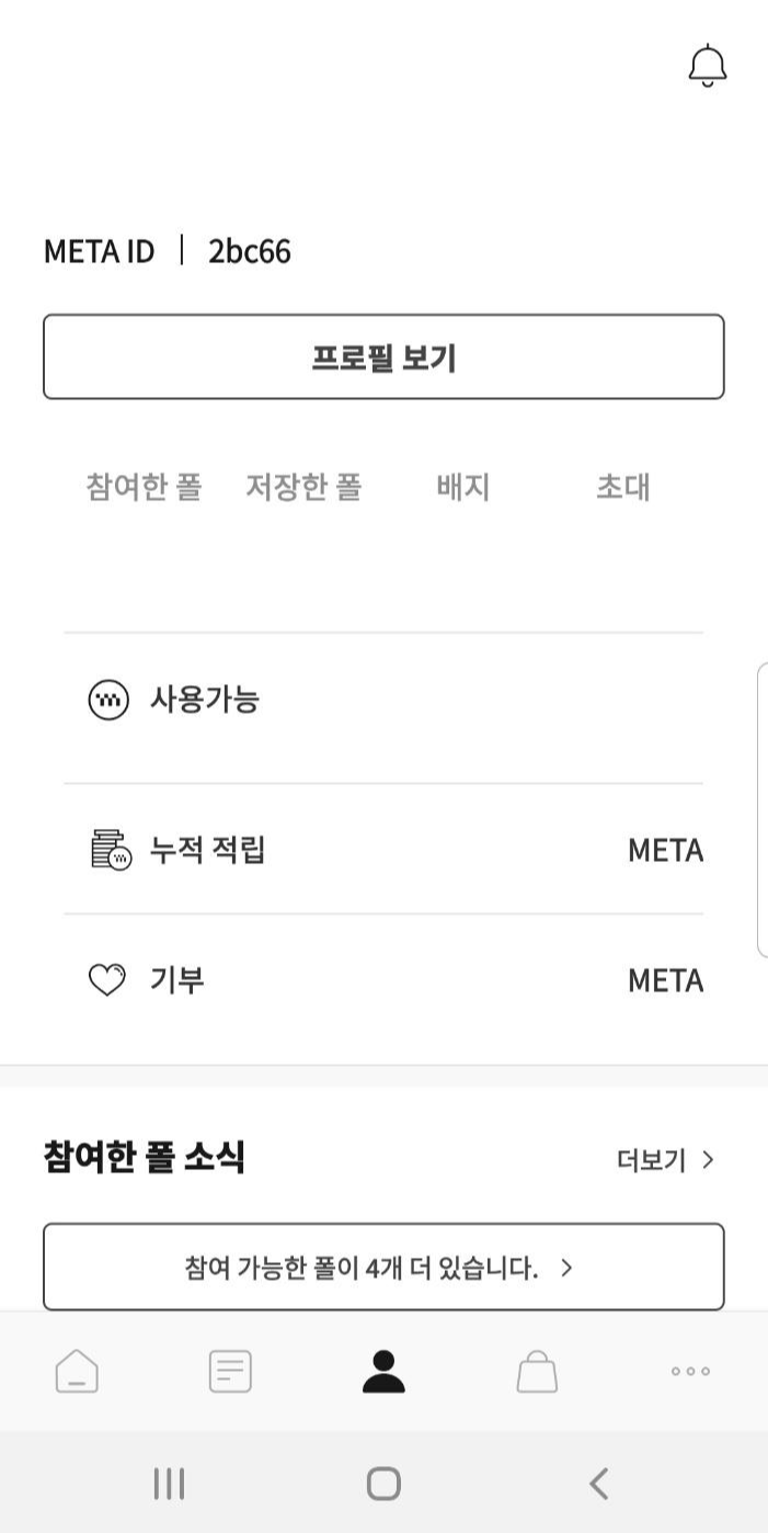 1. THEPOL 어플을 실핼시켜주세요 핸드폰 하단의 사람모양의 이모티콘을 선택하여 프로필보기 페이지로 이동해주세요