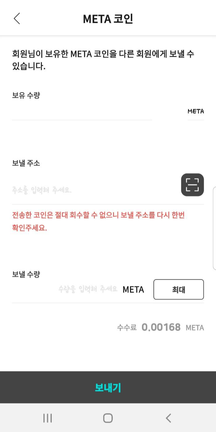 4.META 코인 보내기를 선택해주세요